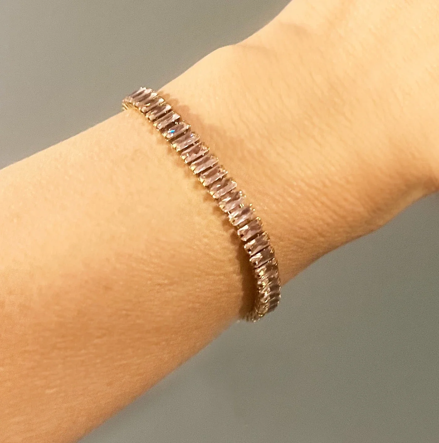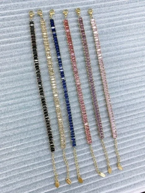 Armbåndene er laget i stål, belagt med 18 karat gull, og med fargede zirkon stener, i 6 forskjellige farger: