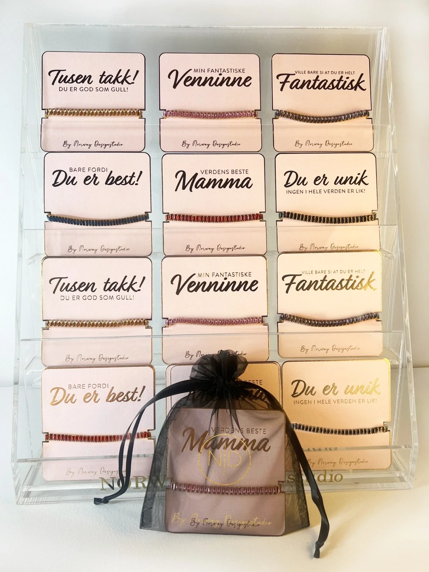 Sett sammen et kort med passende tekst til valgfritt armbånd!